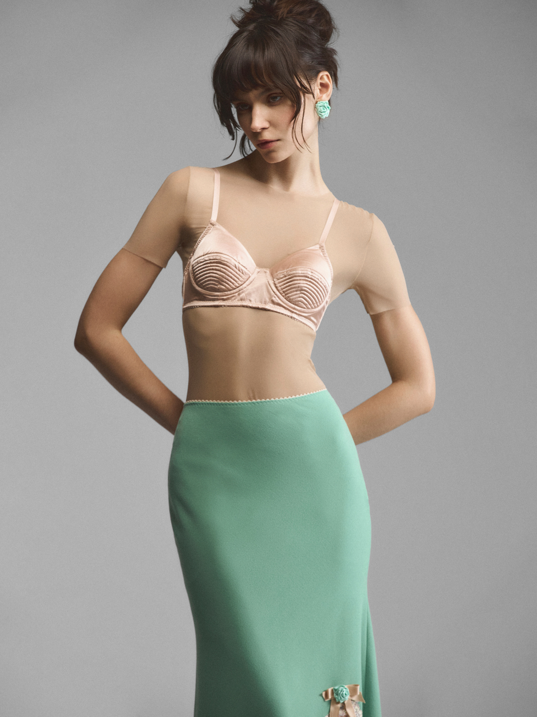 Бельевой лиф бра в винтажном стиле. Широко расставленные лямки подчеркивают зону декольте, позволяя сочетать лиф с открытыми вещами и глубокими вырезами. Корсетные вставки дают необходимую поддержку, декоративная отстрочка чашек подчеркивает их округлую форму. Сложный крой классического бельевого лифа обеспечивает превосходную посадку и прилегание. Модель доступна в белом, черном и пудровом вариантах.